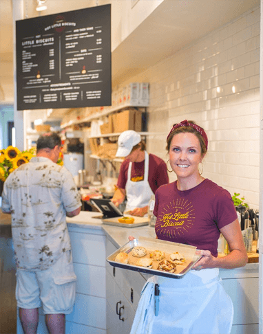 Carrie Morey founded her handmade biscuit business in 2005 with the goal of making the tender, buttery, made-by-hand biscuits of her mother accessible across the country. Over 20 years later, Callie’s Hot Little Biscuit is widely recognized as an iconic Southern brand with national retail exposure, grab-and-go eateries in Charleston, as well as a cult-like national following.