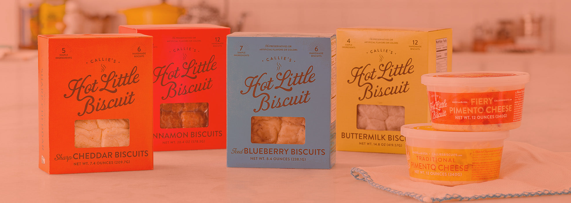 Let us help bring the Southern tradition of a handmade biscuit, quality pimento cheese, and South Carolina-milled grits to your customers’ tables. Our line of southern staples include biscuits, spreadables like pimento cheese, jams, and honey, and pantry must haves like grits, cheese crisps, crackers, coffee, and cookies. Our line of Biscuit Mixes are the most recent addition to the Callie’s Hot Little Biscuit pantry. Since debuting in 2019, these mixes have been our most coveted shelf stable item. Curate the perfect gift basket with