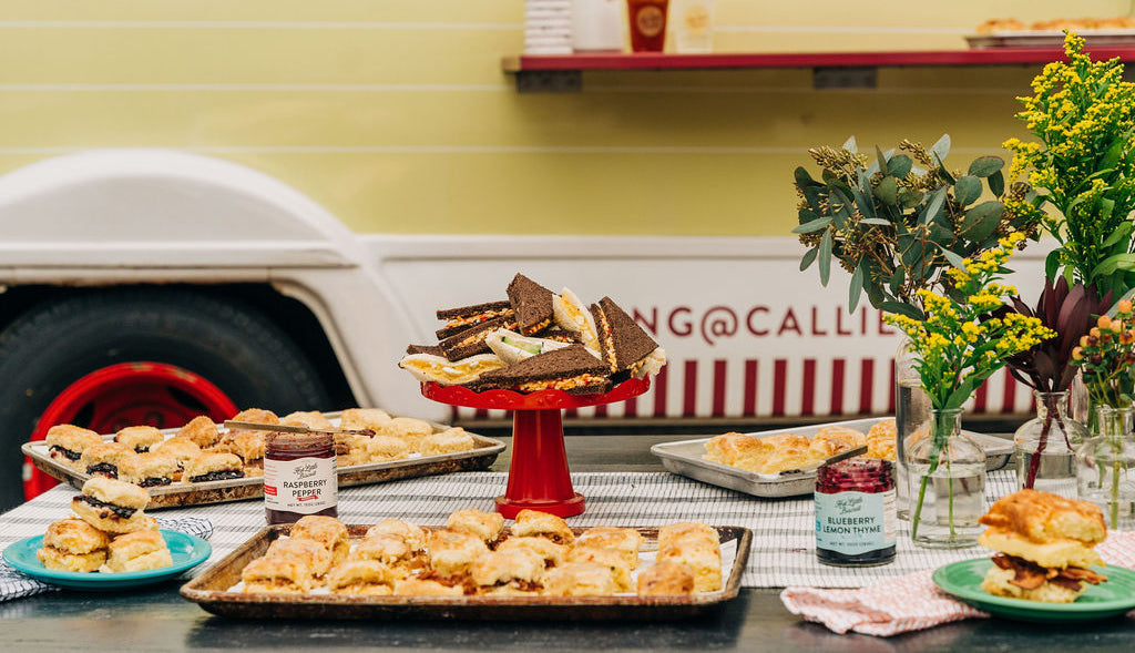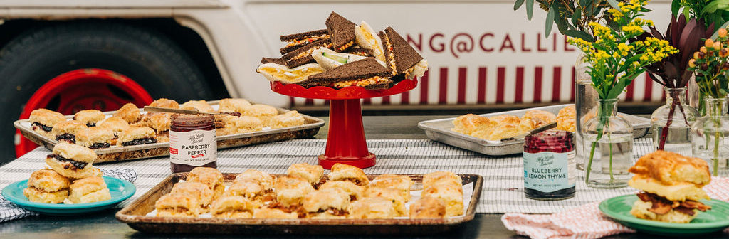Make your event the jam with the help of our hot little catering team. Our selection of Southern staples are fit to please any crowd – including office luncheons, bachelorette parties, weddings, corporate events, and more! Choose from our legendary grits bar, tea sandwiches with recipes passed down through the Morey family, and of course, our hot little biscuits. Download our catering menu and submit an inquiry below, or email us direct at info@calliesbiscuits.com!