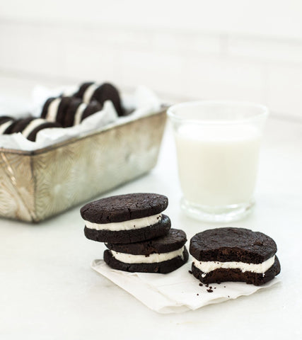 The hand-rolled dough bakes up a dense dark chocolate cookie that when sandwiched with our signature fluffy sweet cream center produces a dessert you’ll try to keep stocked for entertaining but enjoy every day.